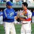 SK와 삼성의 경기가 1일 인천 문학구장에서 열렸다. 경기 전 2010시즌을 끝으로 선수생활을 마무리한 '캐넌히터' 김재현이 은퇴식을 가졌다. 김재현이 삼성 진갑용에게 축하의 꽃다발을 받고 있다. SK의 한국시리즈 3차례 우승을 견인한 김재현은 걸출한 성적과 성실한 자세, 호쾌한 스윙으로 '캐넌 히터'라는 별명을 얻으며 야구팬에게 많은 사랑을 받았다. 인천=허상욱 기자 wook@sportschosun.com/2011.10.01/