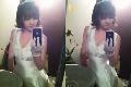 공개된 사진 속 정소민은 가슴골이 깊게 파인 순백 웨딩드레스를 입고 거울에 비친 자신의 모습을 휴대폰 카메라로 찍고 있다.